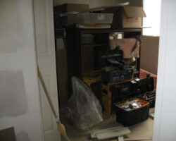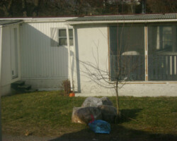They had two massive dogs who had basically destroyed whatever lawn there may have been at one time. What little work had been done was very shoddy. When I leaned against the railing on the deck they had it started to collapse and I nearly fell off. They only things that was done right were the two additions, one at the front right with what could be two bedrooms and one at the back with a bedroom and a bathroom.