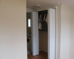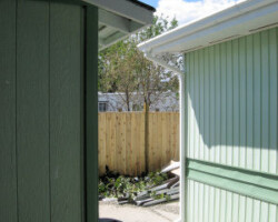 It's hard to describe just how bad the place was from the outside. It was either damaged or broken down everywhere. No question the place was an eyesore in the park. The first job was to demo pretty well everything. The shed, although in pretty rough shape and empty on the inside, was structurally sound. It had a door opening on the back which made no sense to me because it would only be perfect back there for break-ins. I knew from the start that I would need a place for all my tools and to work because there would be nowhere in the house for this, plus I was trying to live there through all of this. Although I seemed to always be working on a million things at once, I did find time to reclad the shed and build in some great shelving and a workbench. In no time at all it was full.