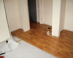 Once we had removed the vanity and the bathtub we went to remove the old vinyl flooring. Naturally I was hoping it would come up in one piece, so Chris and I got a hold of one side and gave it a tug and it did come up in one piece. To my horror the vinyl and the floor was covered in obvious black mold! I grabbed Chris and we ran outside. It was too late to worry that we should have had breathers on or, better yet, called the HazMat team in. The damage had been done.